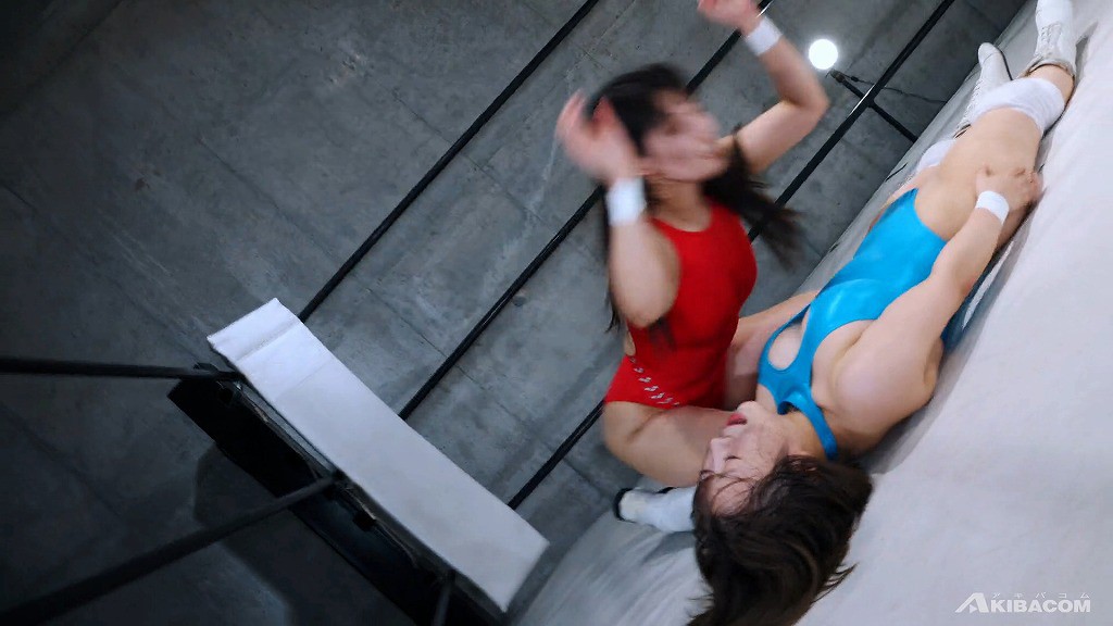倒れている深月に脚四の字固め